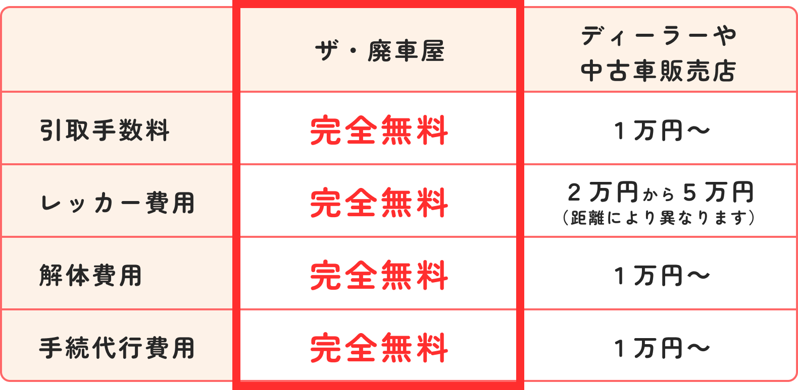 ザ・廃車屋にご注文いただければ完全無料で廃車処分できます。